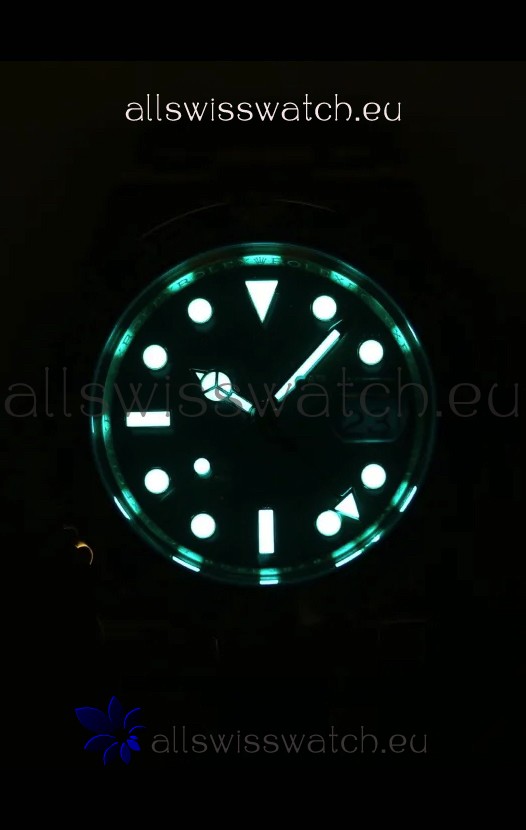 Green Dial with Super-Luminova appied to Hands, Hour Markers and Bezel Pearl. Dial Font is Crisp and is now on Par with the Originals