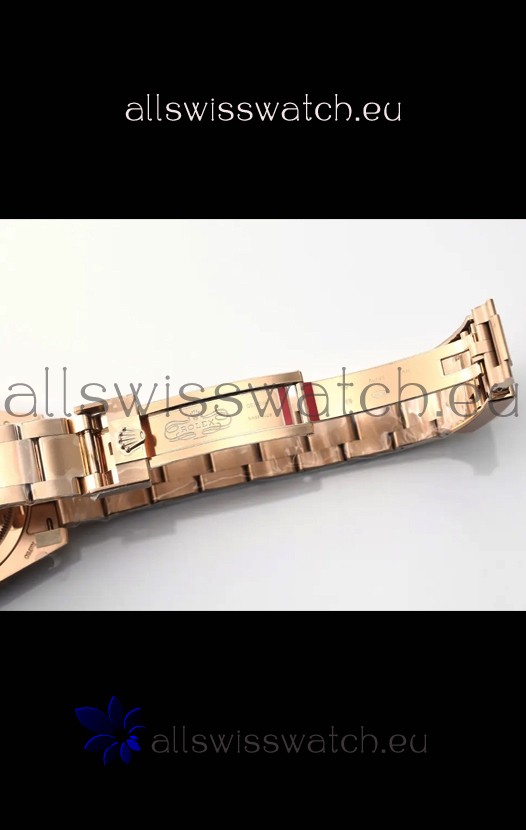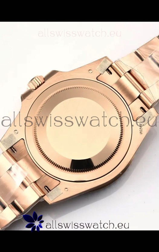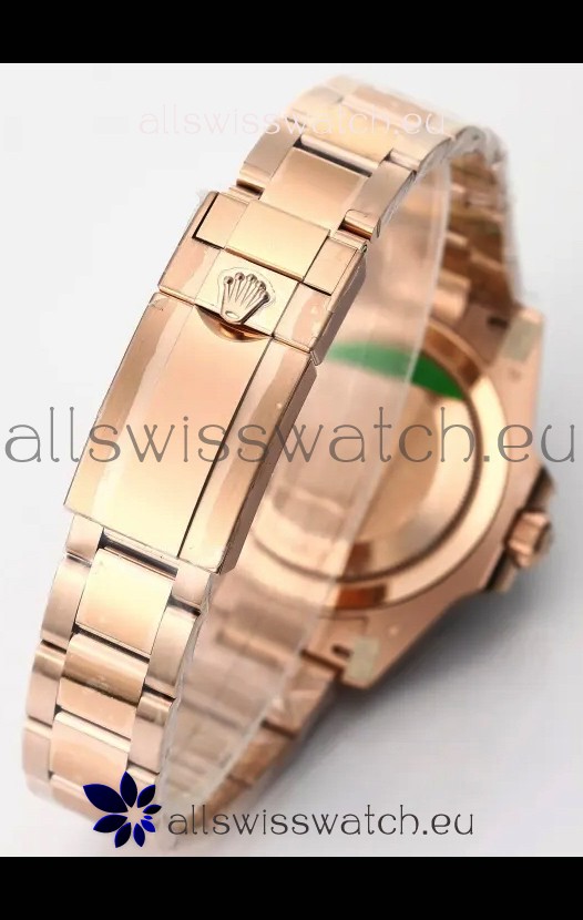 18K Rose Gold Plating on 916L Stainless Steel Strap linked with screws, the best bracelet manufacutred up to date for the GMT Series with Flip Lock Style Clasps complete with Rolex Markings and Engravings. 2MML Lug Spring Bars with rounded heads exactly like the Original GMT Watch Straps.