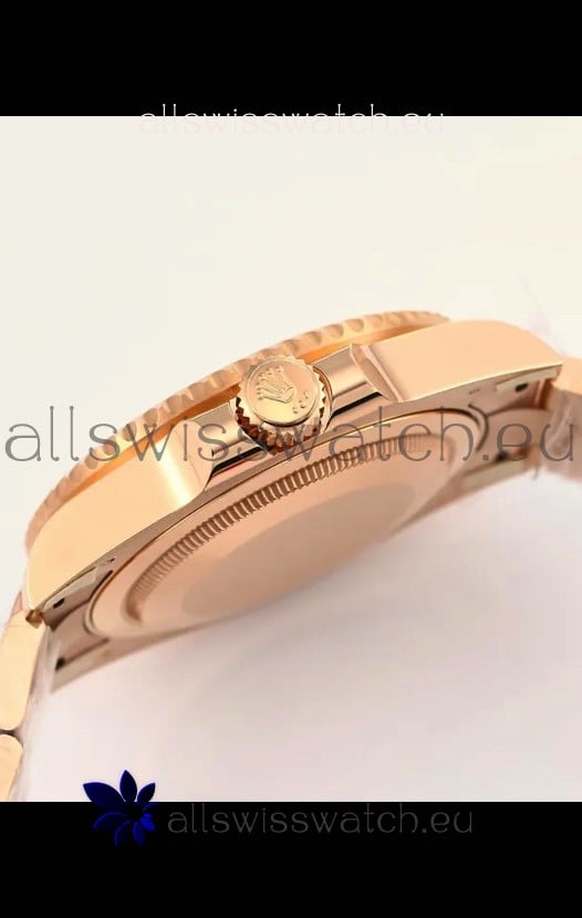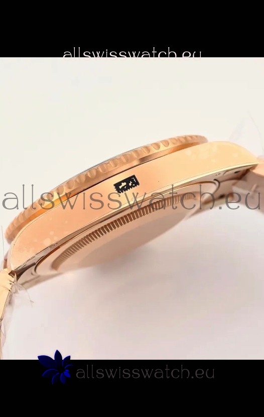 18K Rose Gold Plating on 904L Stainless Steel Case as per the Orginal with Metallic Black/Brown Ceramic Inserts.