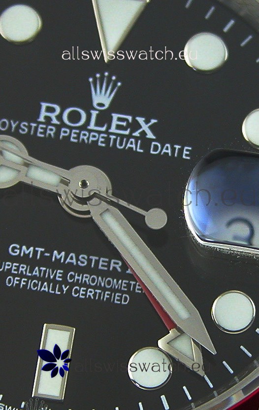 Black Dial with Date Window at 3 O'Clock Indicator and Fourth GMT Hand Functional as per the original