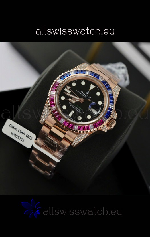 Rolex GMT Masters Super Clone Diamonds Swiss watch with Rose Gold 904L Case - 1:1 Mirror Quality