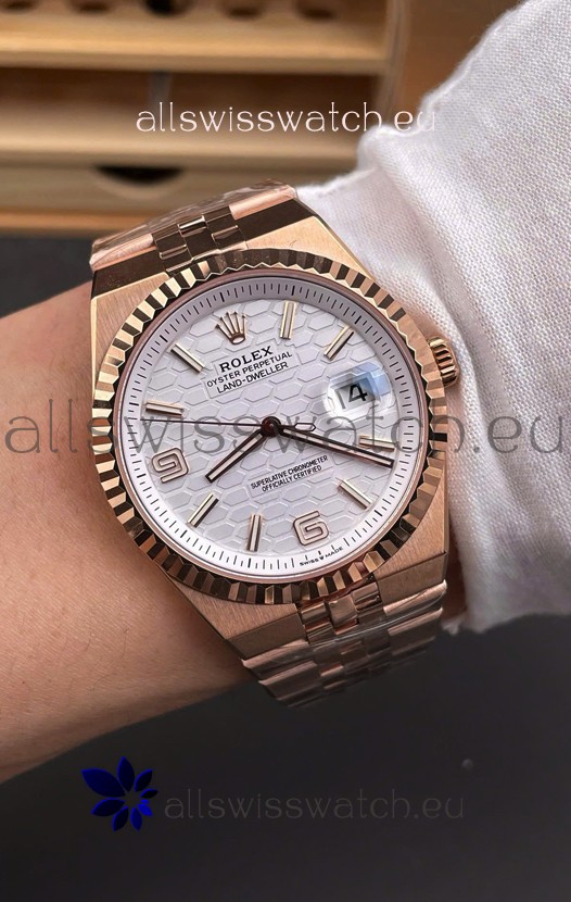 Rolex Land-Dweller 127335 Steel Honeycomb Rose Gold 40MM Swiss Replica Watch