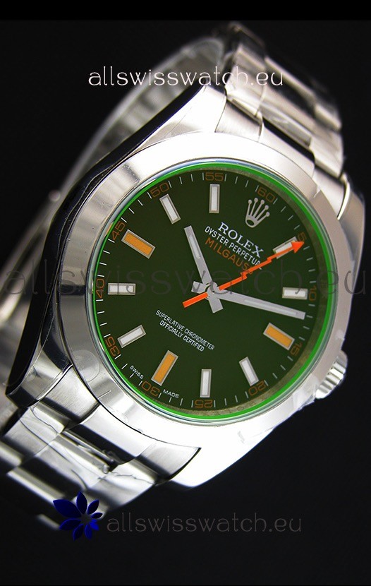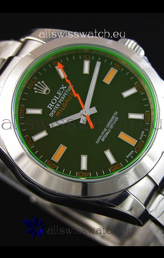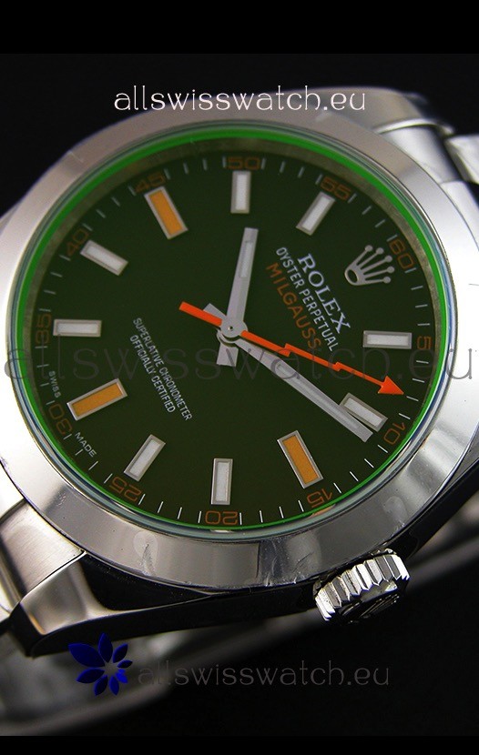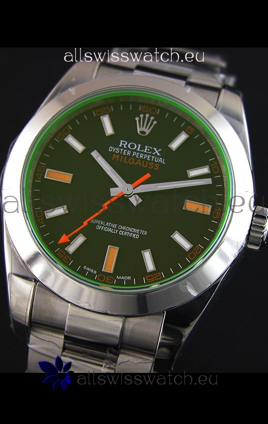 The Best Rolex Milgauss Model Replicated up to Date. The First Rolex model to adopt a 904L Steel on Casing and Strap which is the same steel used by Rolex.