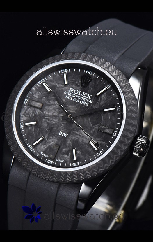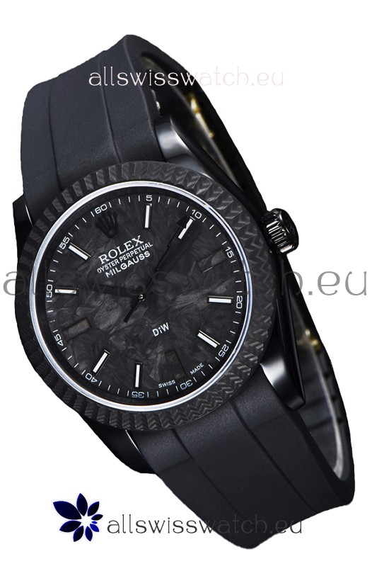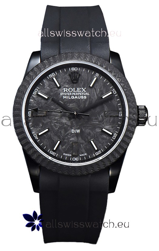 Rolex Milgauss DiW Black Carbon Casing Watch - ETA2836 Automatic Movement in Black Strap