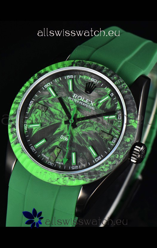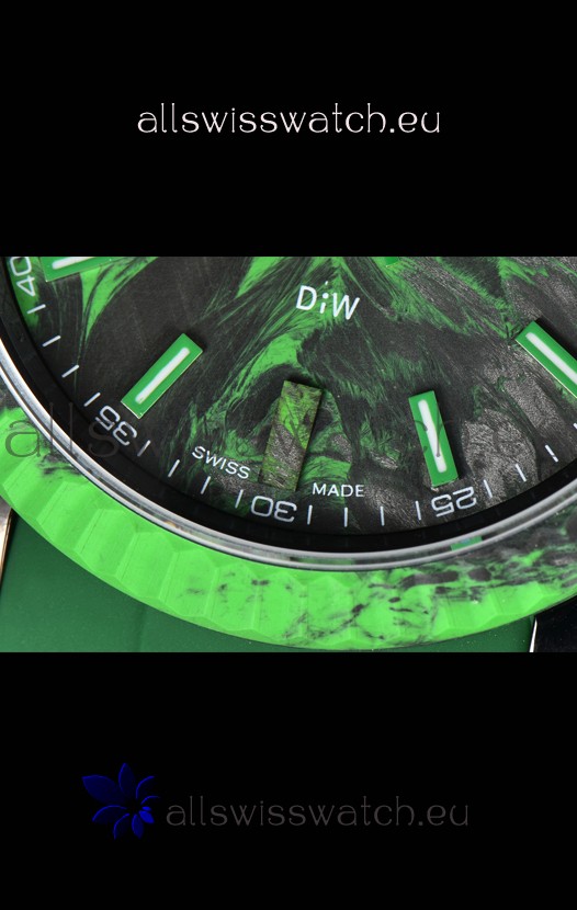 Rolex Milgauss DiW Green Carbon Casing Watch - ETA2836 Automatic Movement in Green Strap