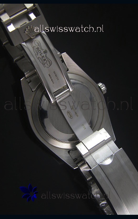 316L Stainless Steel Strap linked with Screws for easy adjustment with Folding Clasps complete with Rolex Markings and Engravings as per the Original.