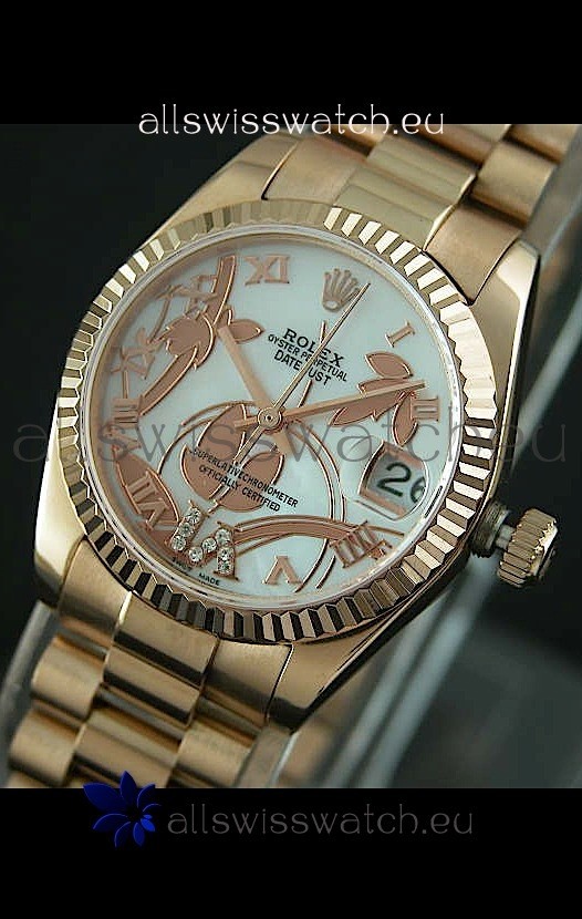 Watch name: Rolex Oyster Perpetual Date Just Lady Swiss Rose Gold Watch in Pearl White Dial