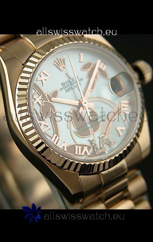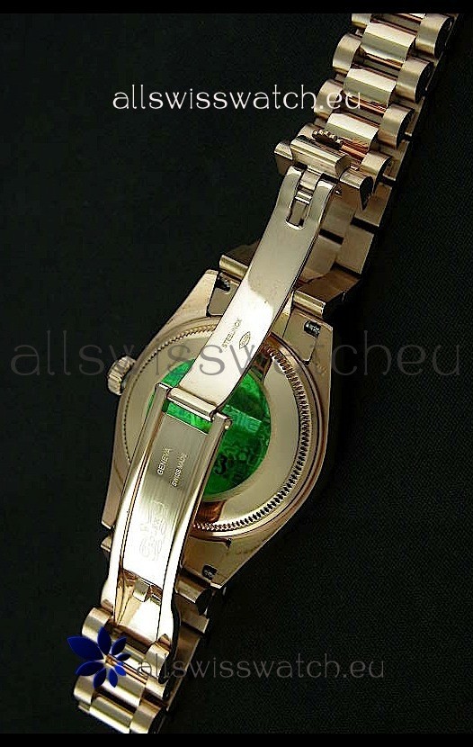 Other Feartures: Fluted Rose Gold Bezel, Solid caseback with Rolex Hologram and Genuine Sapphire Crystal like Authentics
