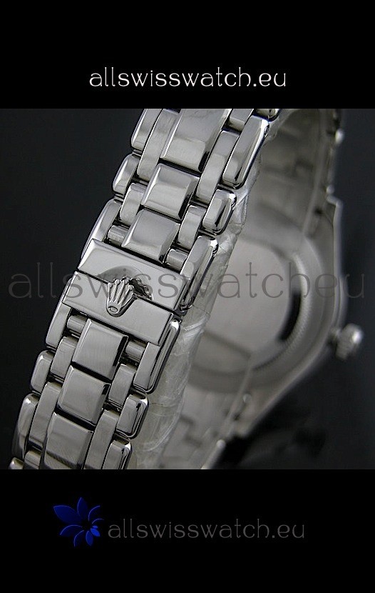 Function: Hour, Minute, Smooth Sweeping Second Hand Movement, High Quality Square Diamond Hour Markers, Rolex Logo Eteched at 12 O'Clock, Day Indicator and Date Window at 3:00