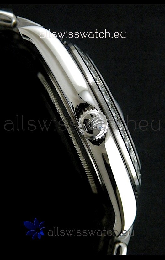 Other Feartures: Full Diamond Bezel, Solid Caseback with Rolex Hologram and Sapphire Crystal