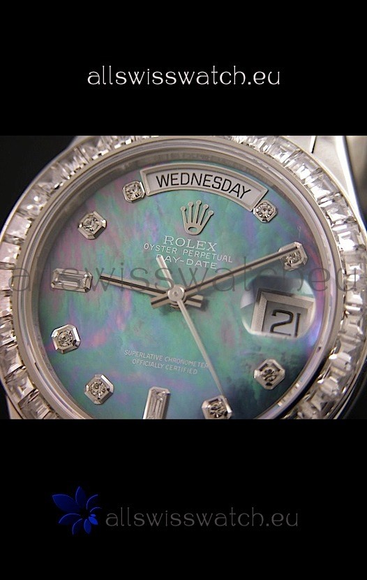 Watch name: Rolex Oyster Perpetual Day Date Swiss Replica Watch in Blue Mother of Pearl Dial