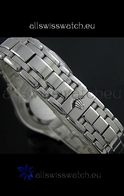Function: Hour, Minute, Smooth Sweeping Second Hand Movement, High Quality Square Diamond Hour Markers, Rolex Logo Eteched at 12 O'Clock, Day Indicator and Date Window at 3:00