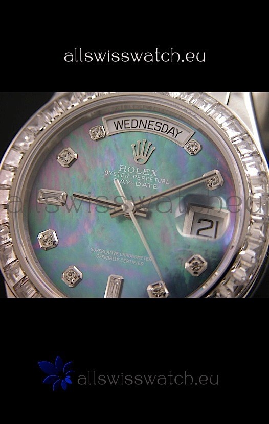 Rolex Oyster Perpetual Day Date Swiss Replica Watch in Blue Mother of Pearl Dial