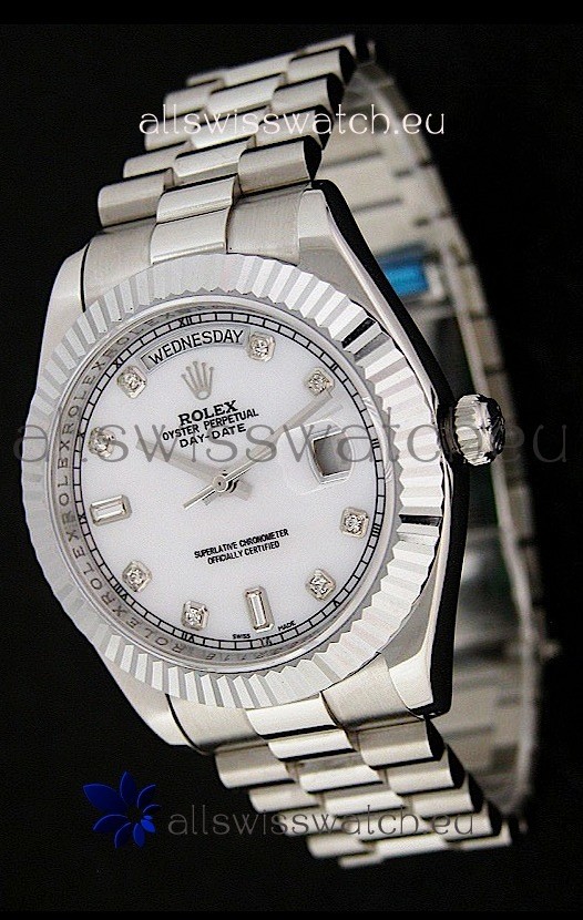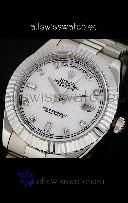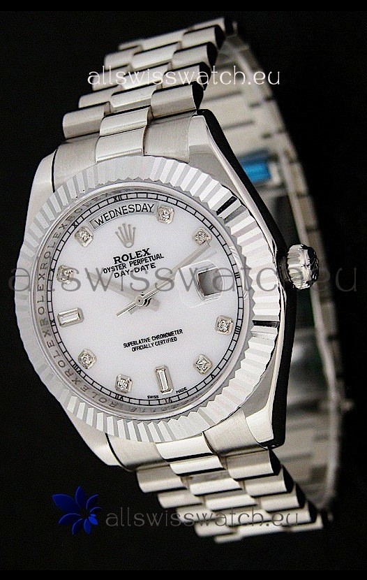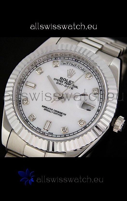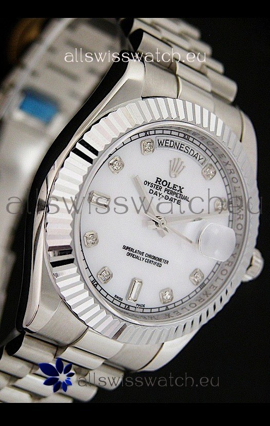 Watch name: Rolex Oyster Perpetual Day Date Swiss Replica Watch in White Mother of Pearl Dial
