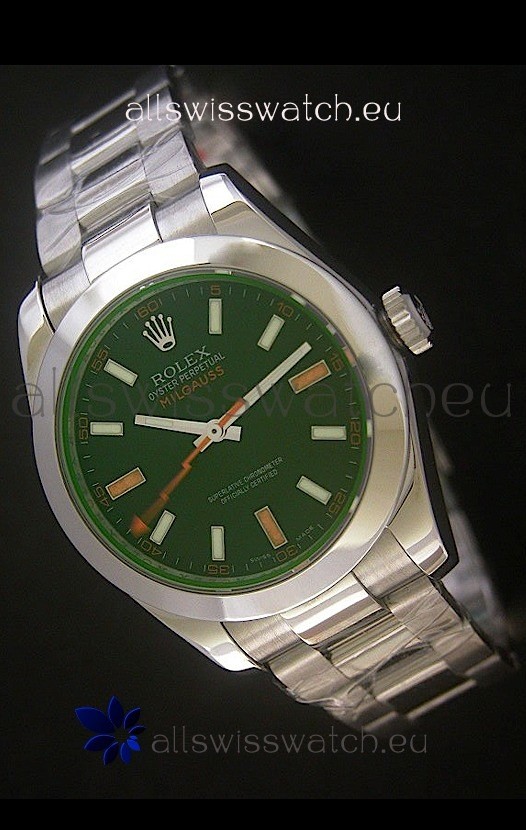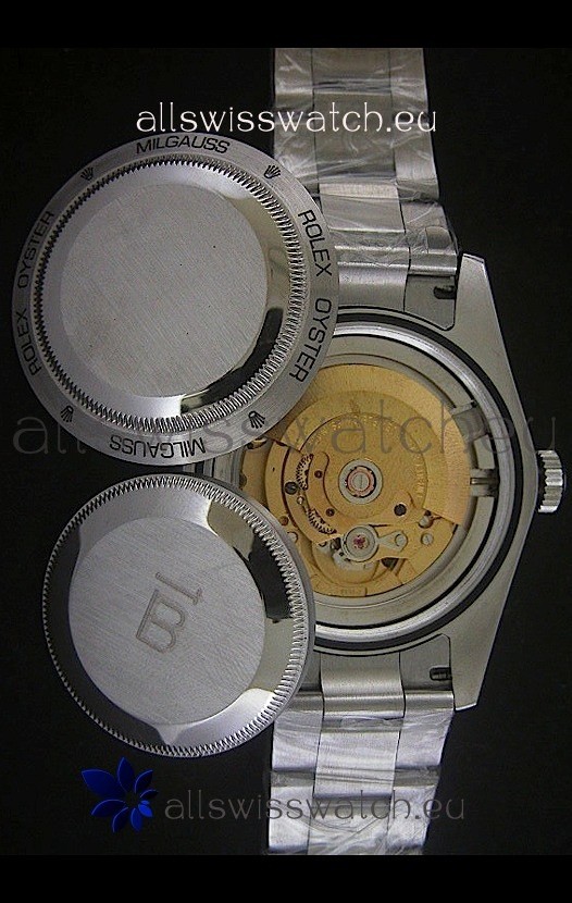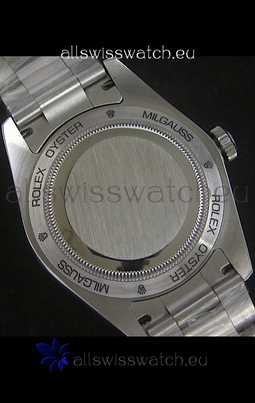 Watch name: Rolex Oyster Perpetual Milgauss Swiss Replica Stainless Steel Watch in Black Dial