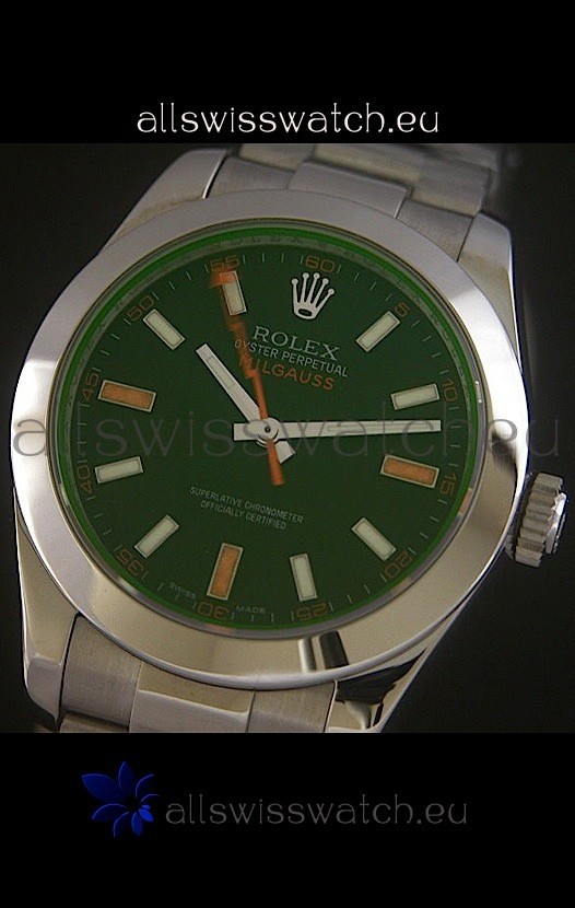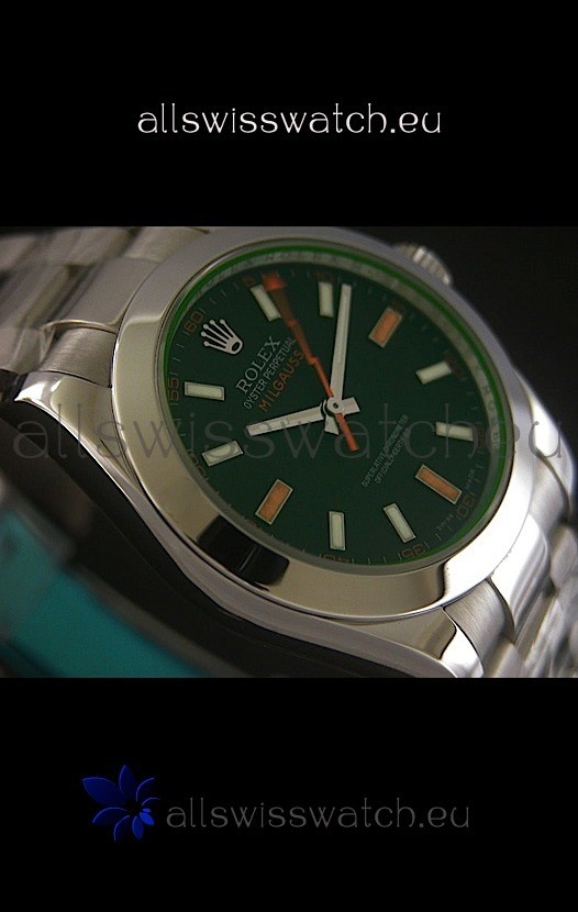 You're reviewing: Rolex Oyster Perpetual Milgauss Swiss Replica Stainless Steel Watch in Black Dial