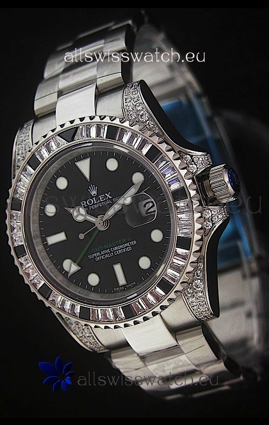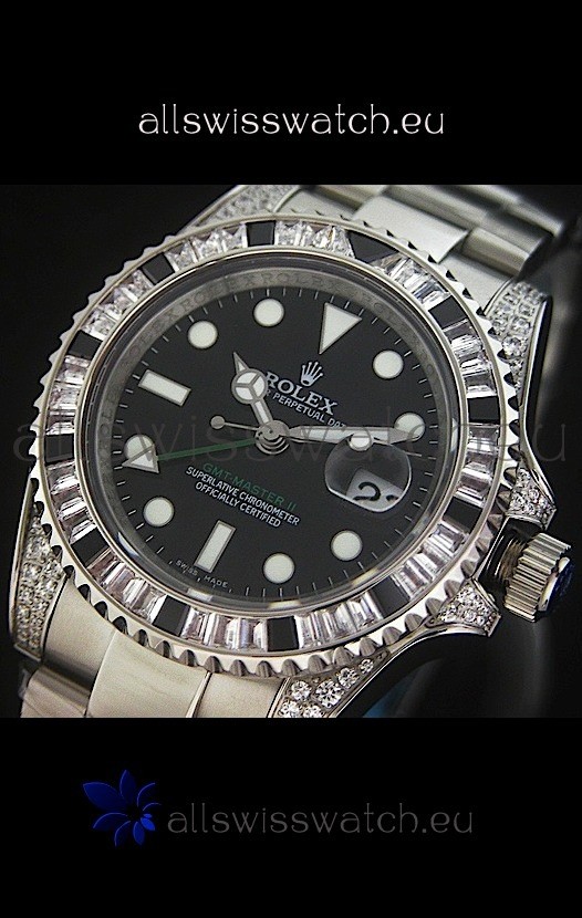 You're reviewing: Rolex Pro-Hunter GMT Master II Swiss Replica Steel Watch in Diamond Bezel