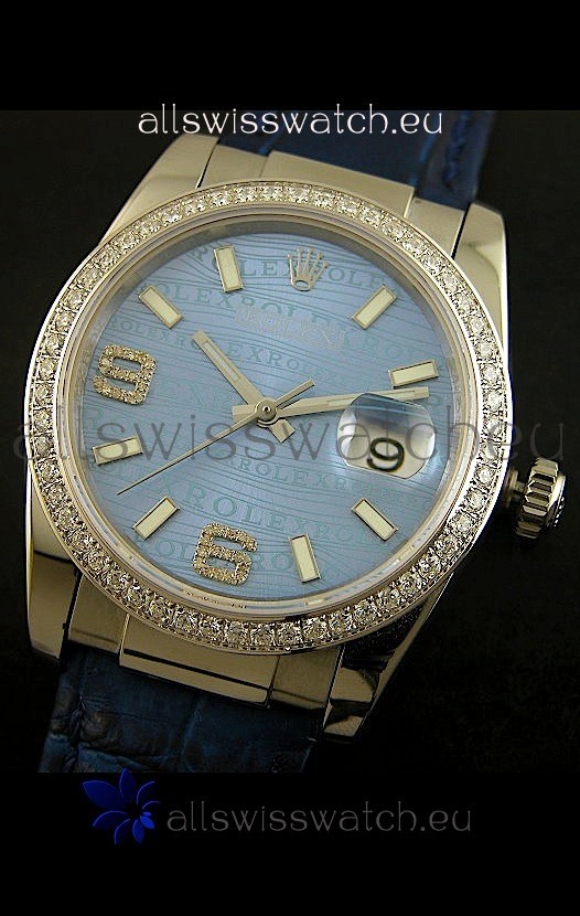 Rolex Replica Datejust Swiss Replica Watch - 37MM - Blue Dial/Strap
