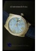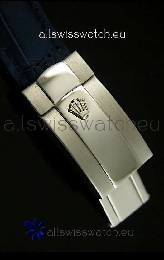 Genuine Blue Leather Strap with Single Fold Rolex Clasp