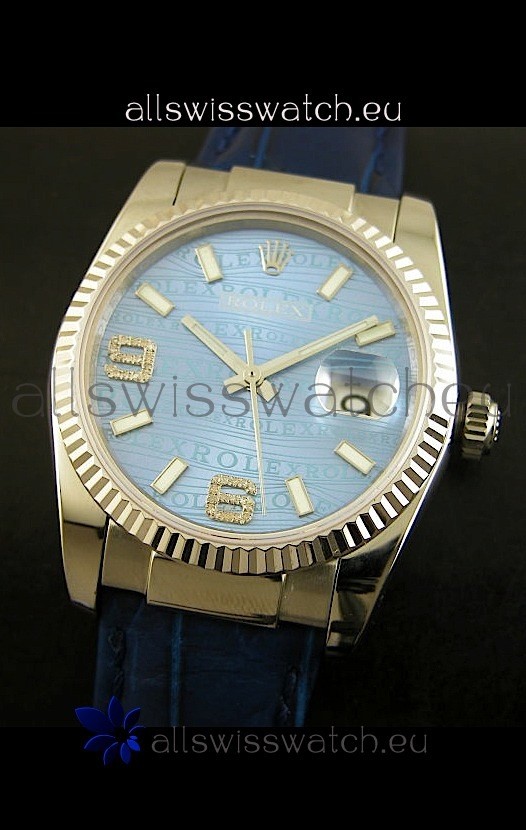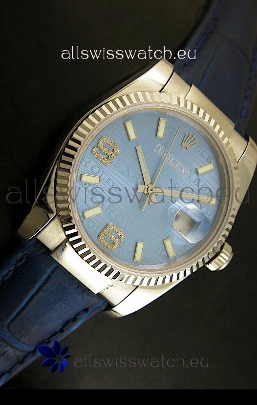 Rolex Replica Datejust Swiss Replica Watch - 37MM - Blue Dial/Strap
