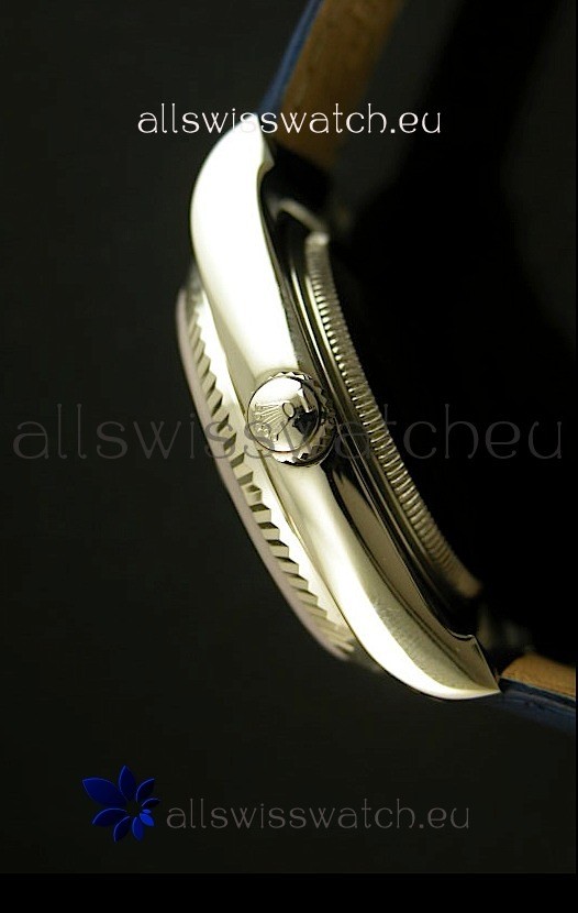 Genuine Blue Leather Strap with Single Fold Rolex Clasp