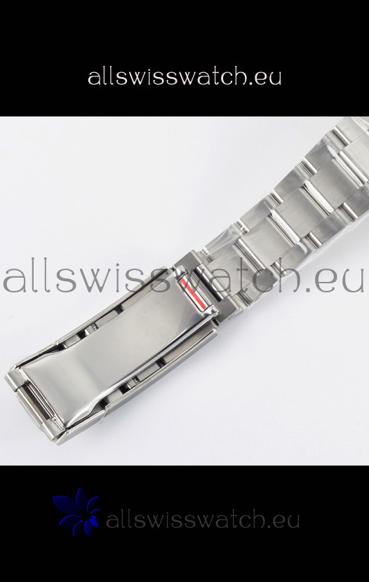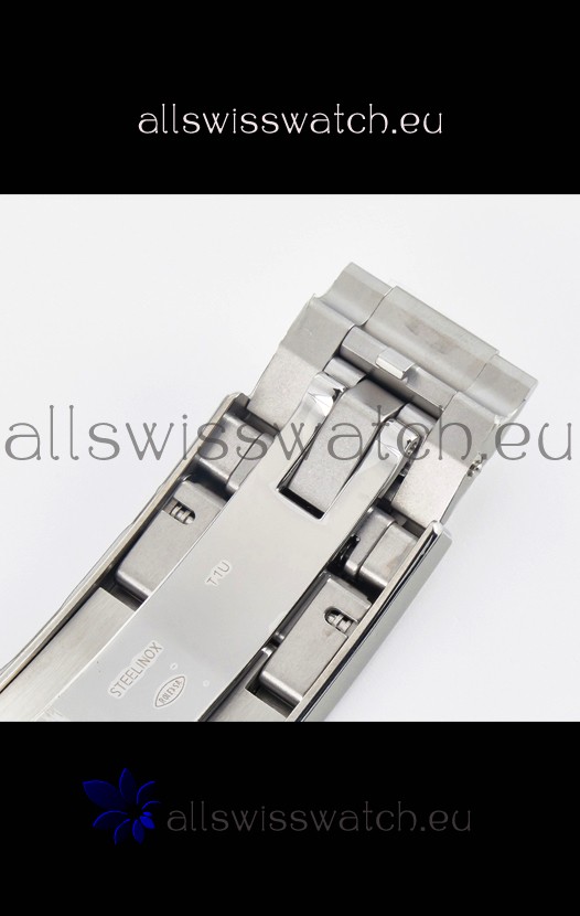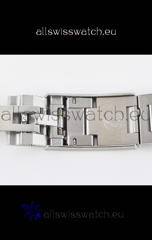 18K 10 Microns Thick Two Tone Gold Plating on 904LL Stainless Steel Oyster Bracelet with Brushed Finish and new design Diver's Extension. Bracelet's been updated with Ball Bearings in Ceramic in Latch Mechanism and Buckle has been updated with much better Finishing and Crisp Markings.