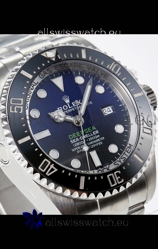 Blue to Black Gradient Dial with Super-Luminova appied to Hands, Hour Markers and Bezel Pearl. Dial Font is Crisp and is now on Par with the Originals Single Red Sea-Dweller Marking on Dial