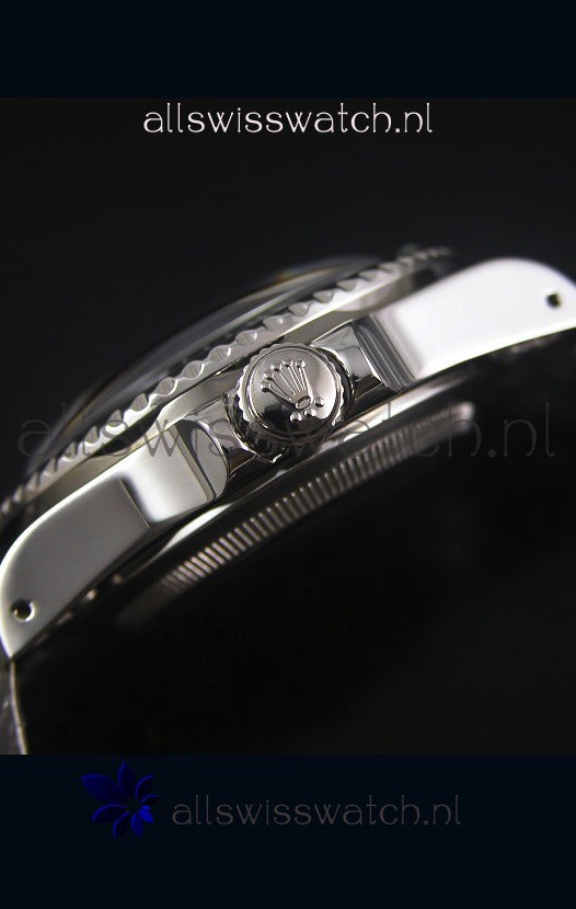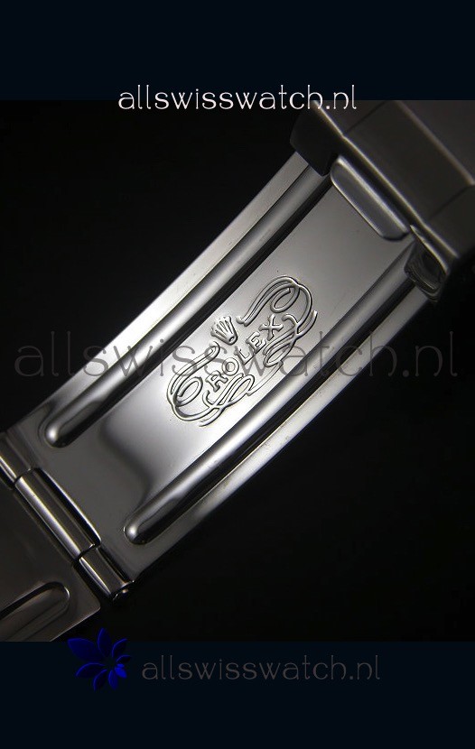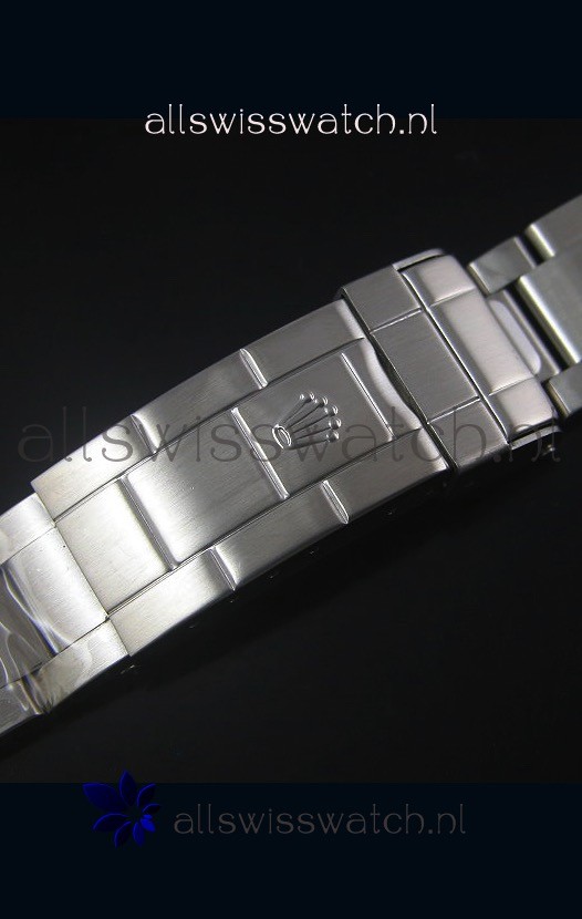 316L Stainless Steel Strap linked with Screws for easy adjustment with Folding Clasps with Divers Extention complete with Rolex Markings and Engravings as per the Original.