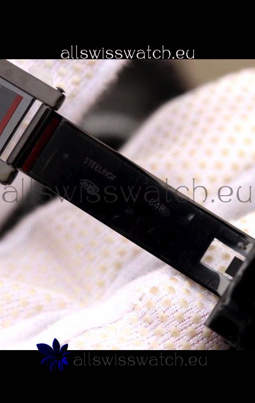 PVD Coating on 316L Stainless Steel Oyster Bracelet with Brushed Finish and new design Diver's Extension. Bracelet's been updated with Ball Bearings in Ceramic in Latch Mechanism and Buckle has been updated with much better Finishing and Crisp Markings.