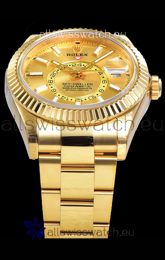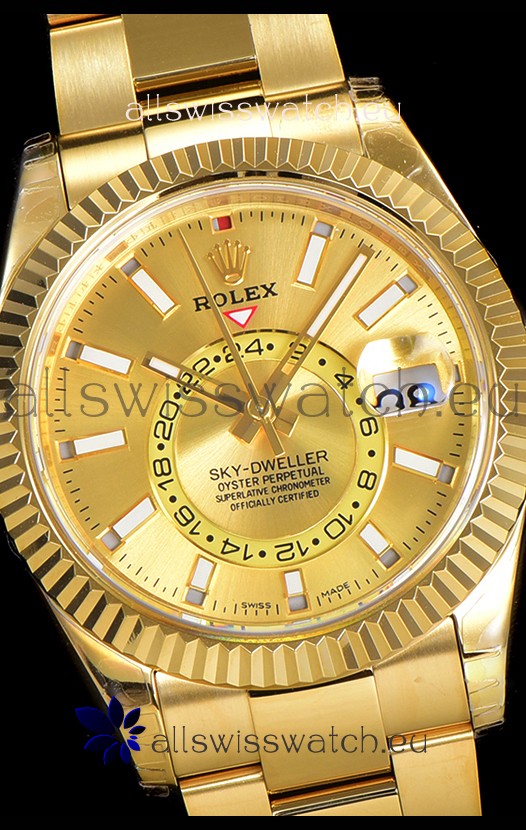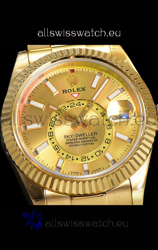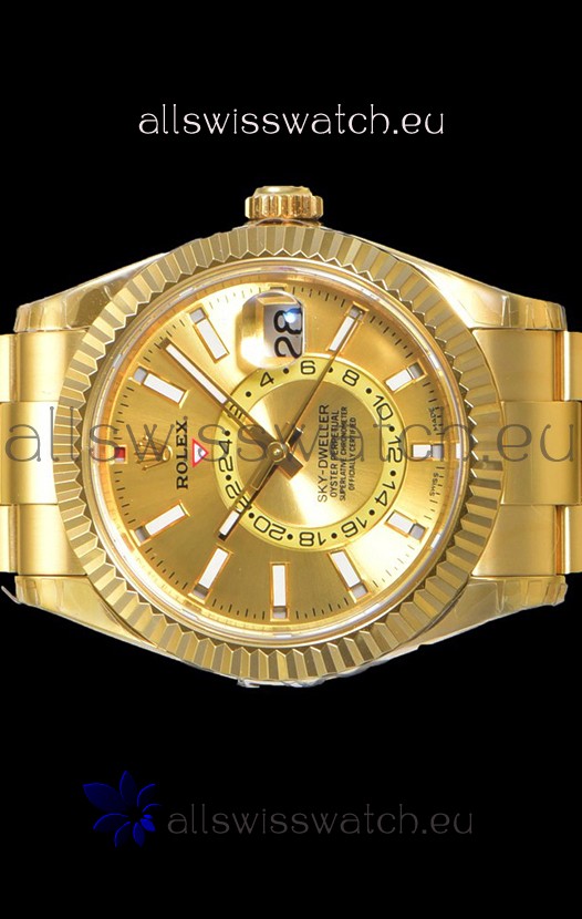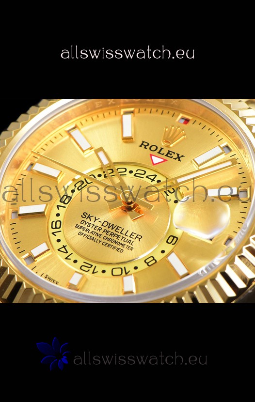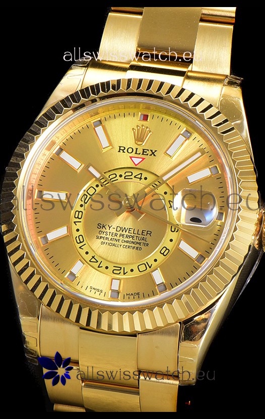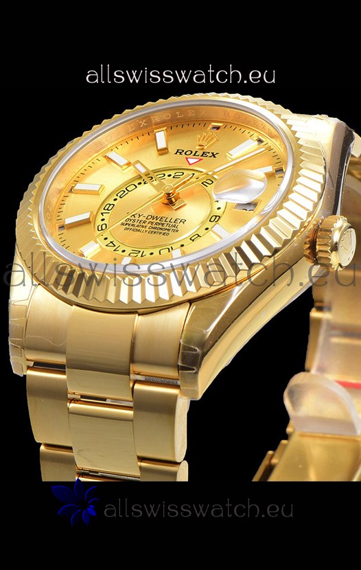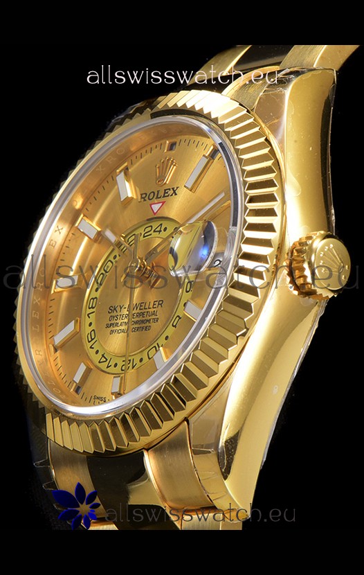You're reviewing: Rolex Sky-Dweller REF# 336235 Gold Dial Watch in Yellow Gold 904L Steel Case 1:1 Mirror Replica