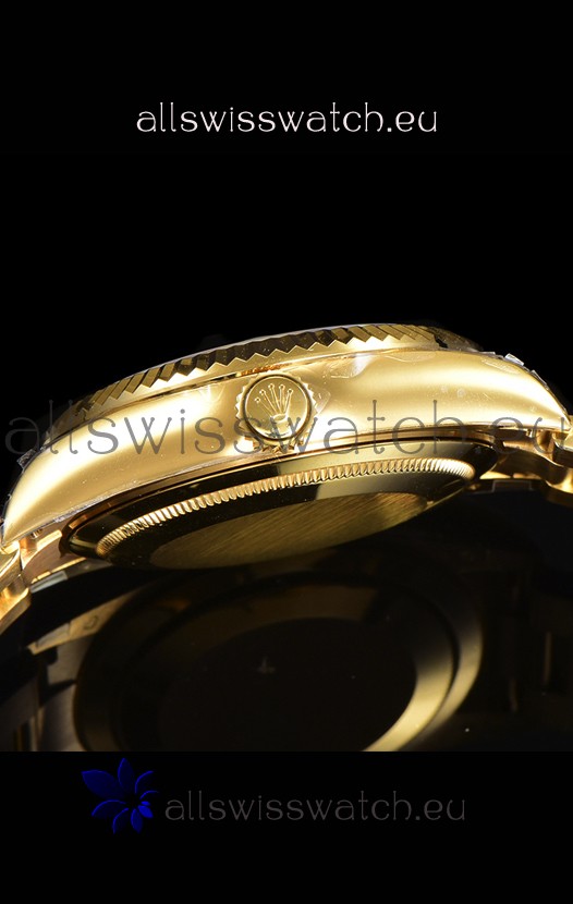 Yellow Gold Plating on 904L Stainless Steel Case with Solid Case Back complete with Rolex Markings and Engravings