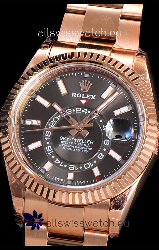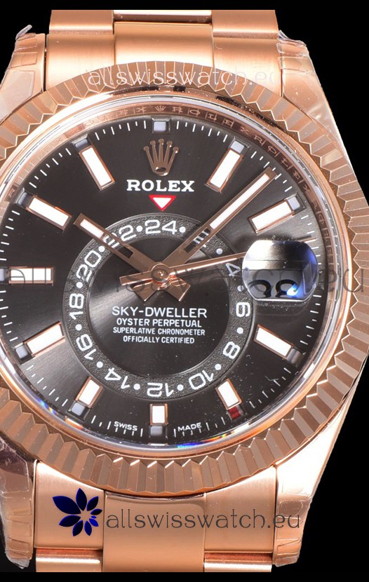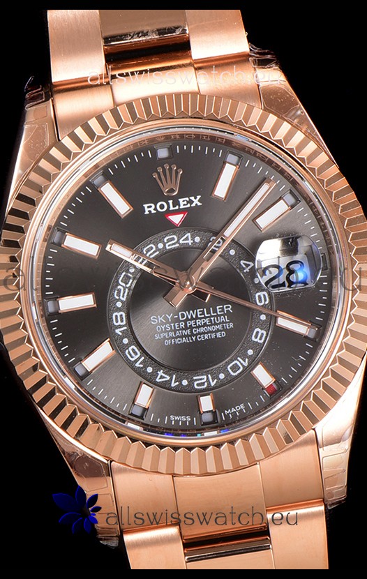 Rolex Sky-Dweller REF# 336235 Slate Dial Watch in Rose Gold 904L Steel Case 1:1 Mirror Replica