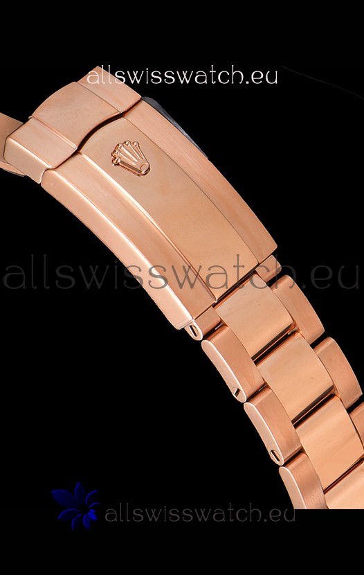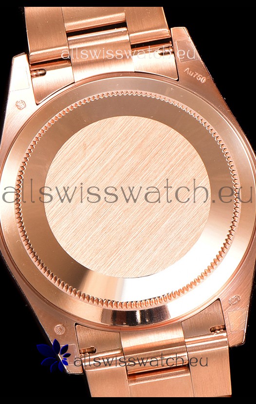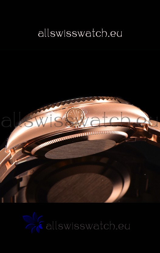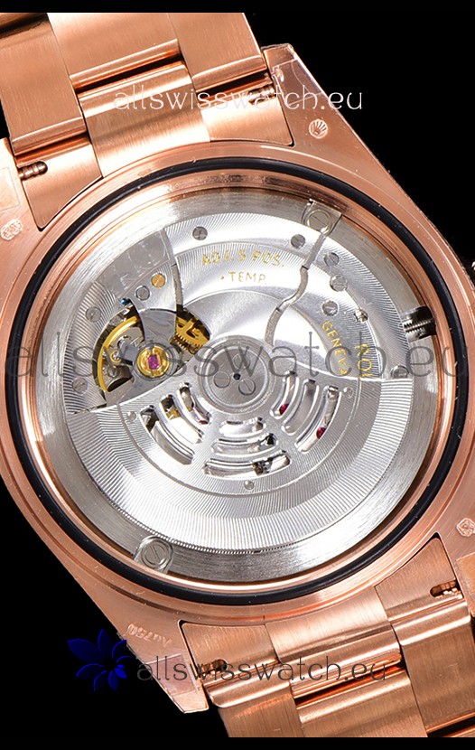 Rose Gold Plating on 904L Stainless Steel Case with Solid Case Back complete with Rolex Markings and Engravings