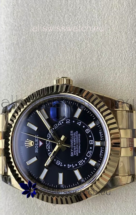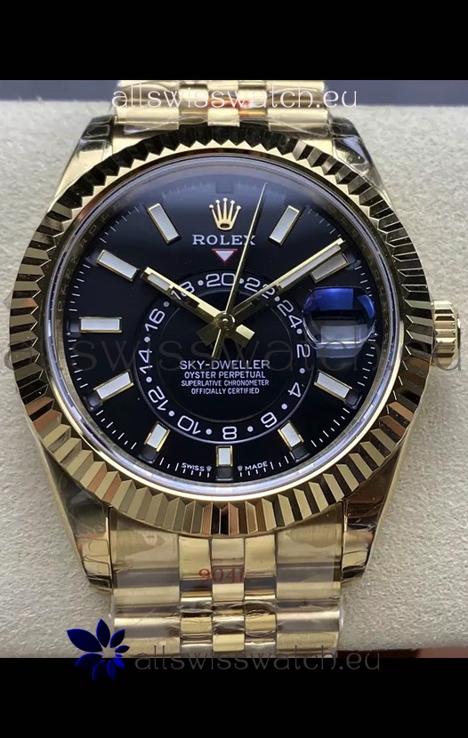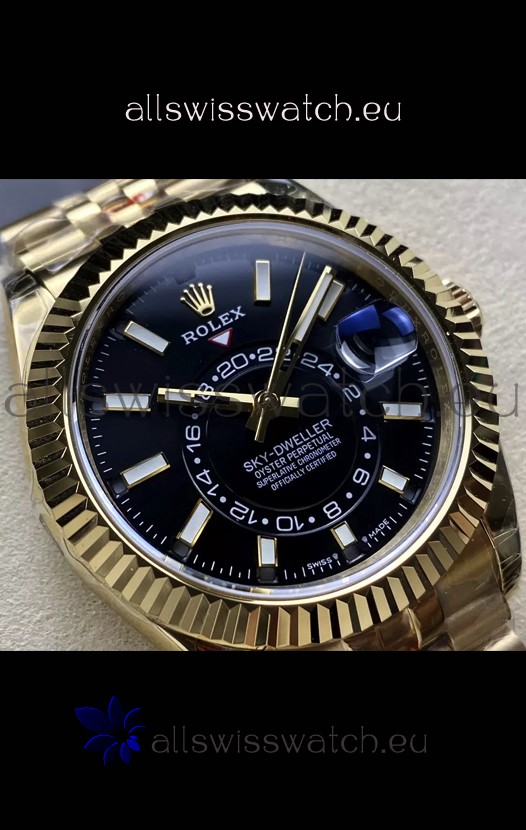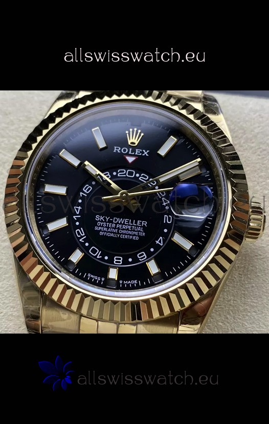 Rolex Sky-Dweller REF# 336935 Black Dial Watch in Yellow Gold 904L Steel Case 1:1 Mirror Replica