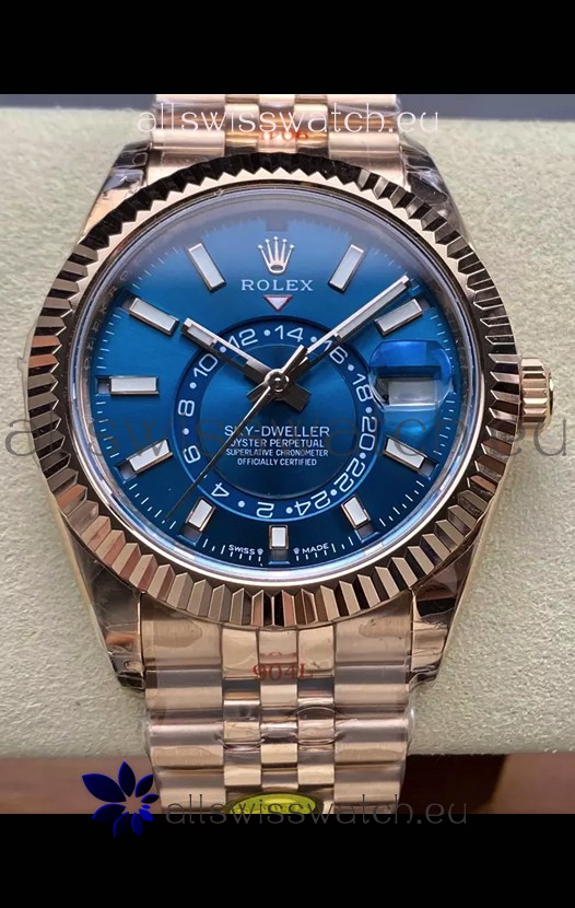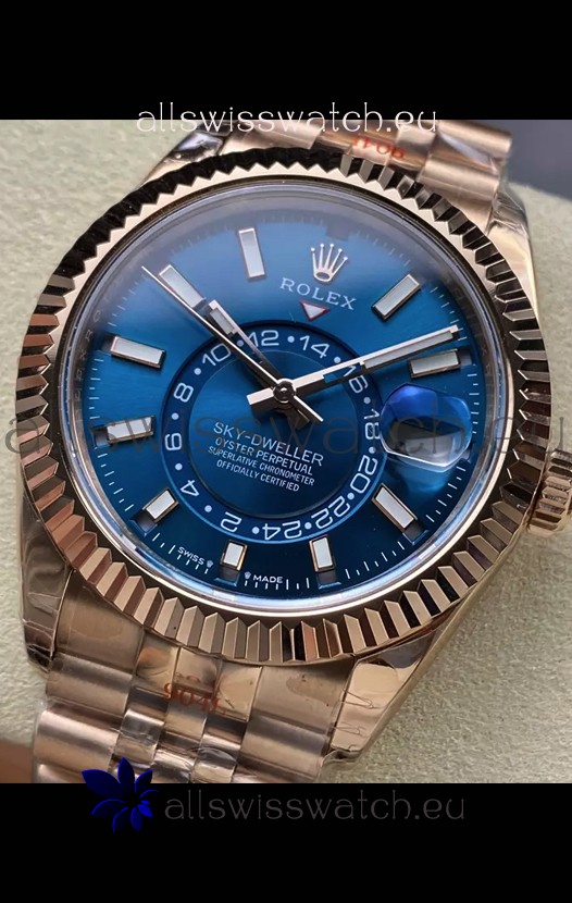 Rolex Sky-Dweller REF# 336935 Blue Dial Watch in Rose Gold 904L Steel Case 1:1 Mirror Replica