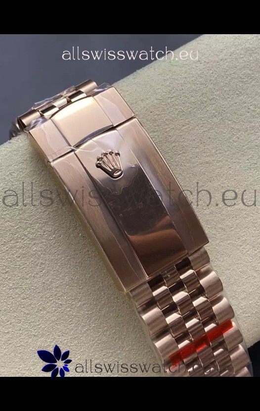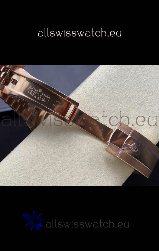 Rose Gold Plating on 904L Stainless Steel Case with Solid Case Back complete with Rolex Markings and Engravings