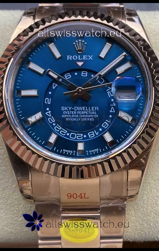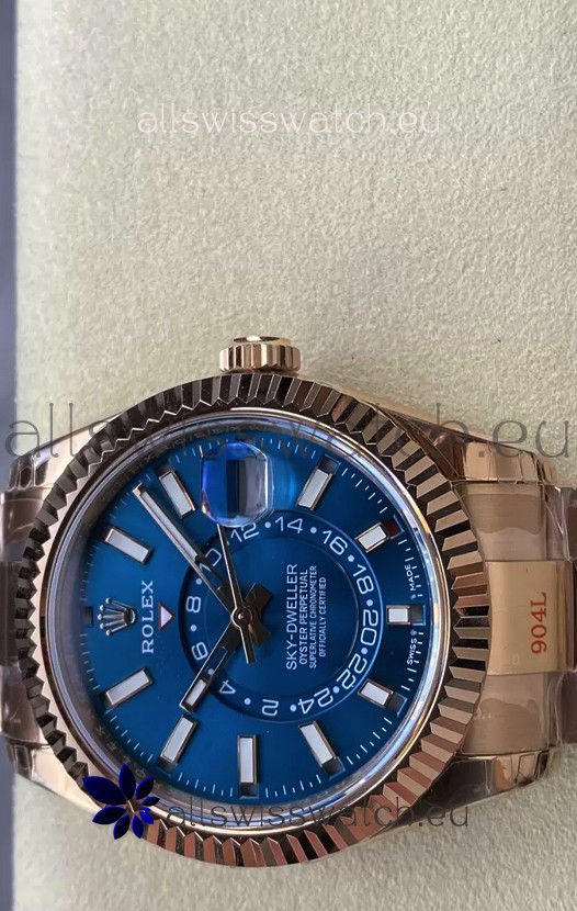 Rolex Sky-Dweller REF# 336935 Blue Dial Watch in Rose Gold 904L Steel Case 1:1 Mirror Replica