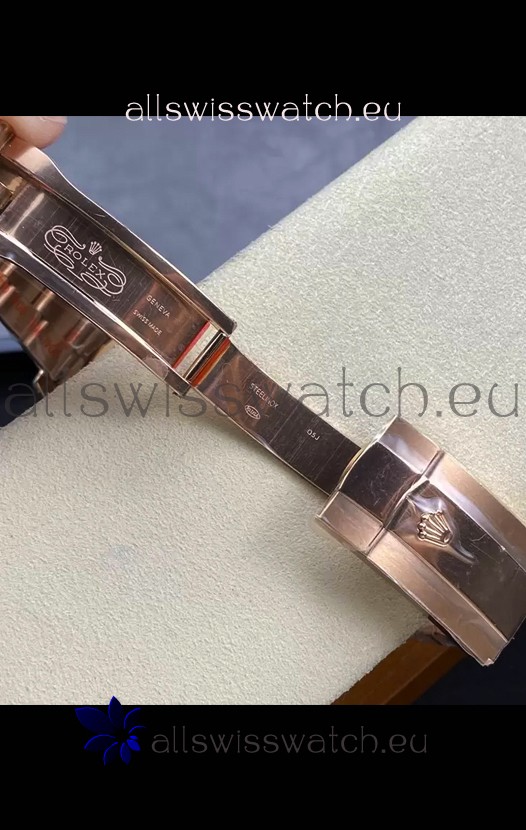 Rose Gold Plating on 904L Stainless Steel Case with Solid Case Back complete with Rolex Markings and Engravings