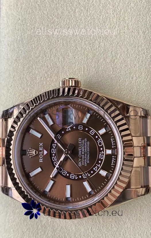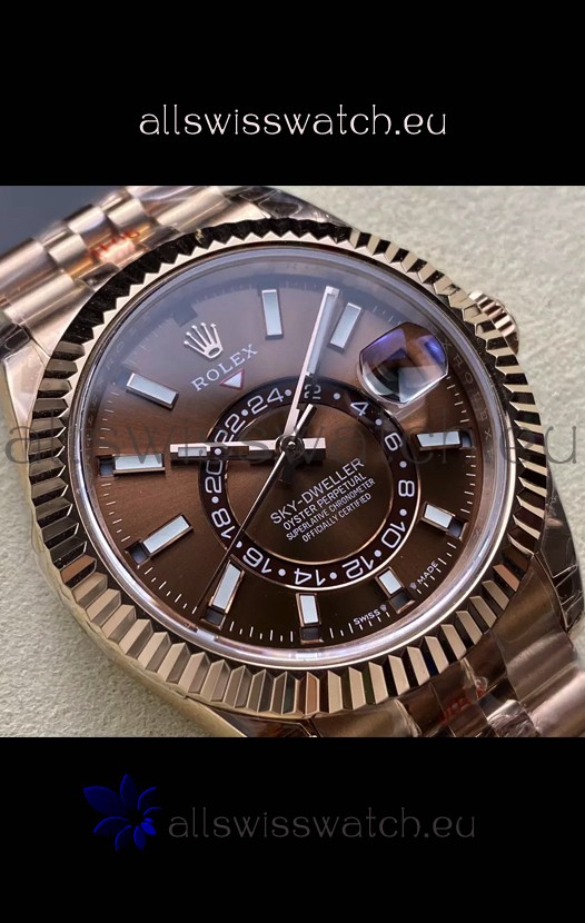 Rolex Sky-Dweller REF# 336935 Brown Dial Watch in Rose Gold 904L Steel Case 1:1 Mirror Replica