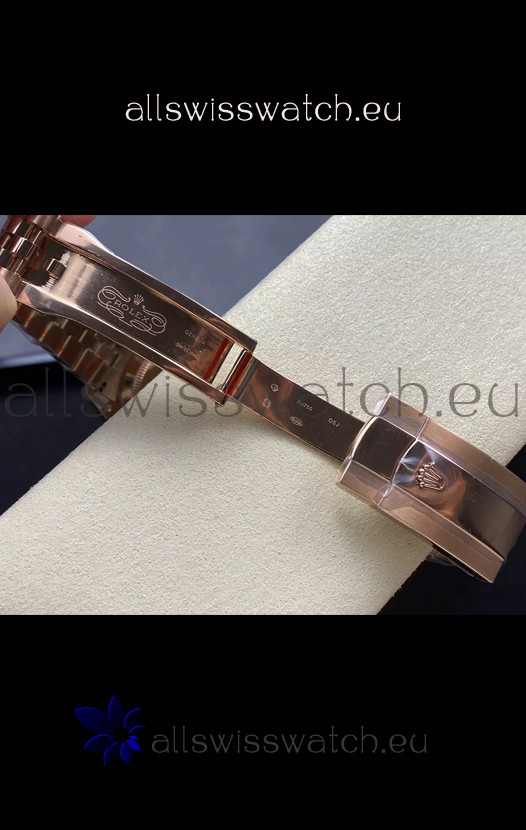 Rose Gold Plating on 904L Stainless Steel Case with Solid Case Back complete with Rolex Markings and Engravings