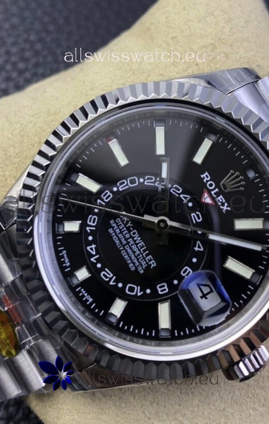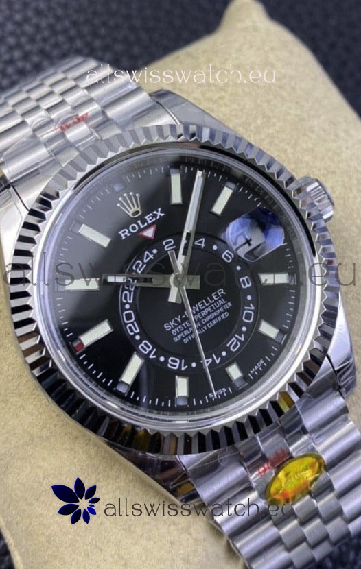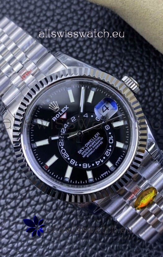 You're reviewing: Rolex Sky-Dweller REF# M326934 Black Dial Watch in 904L Steel Case 1:1 Mirror Replica