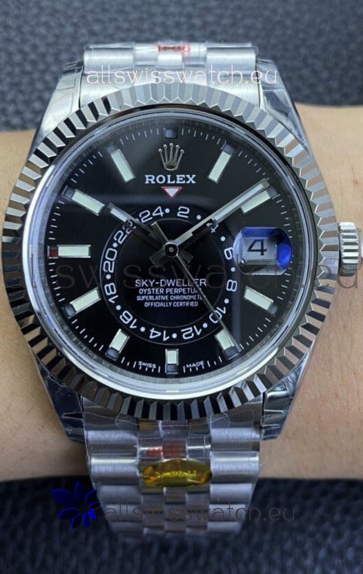 Rolex Sky-Dweller REF# M326934 Black Dial Watch in 904L Steel Case 1:1 Mirror Replica