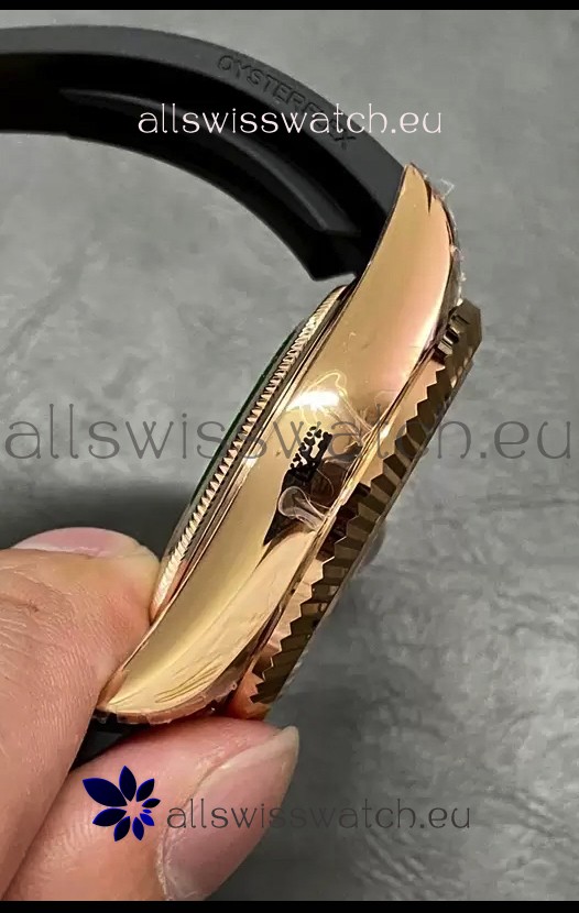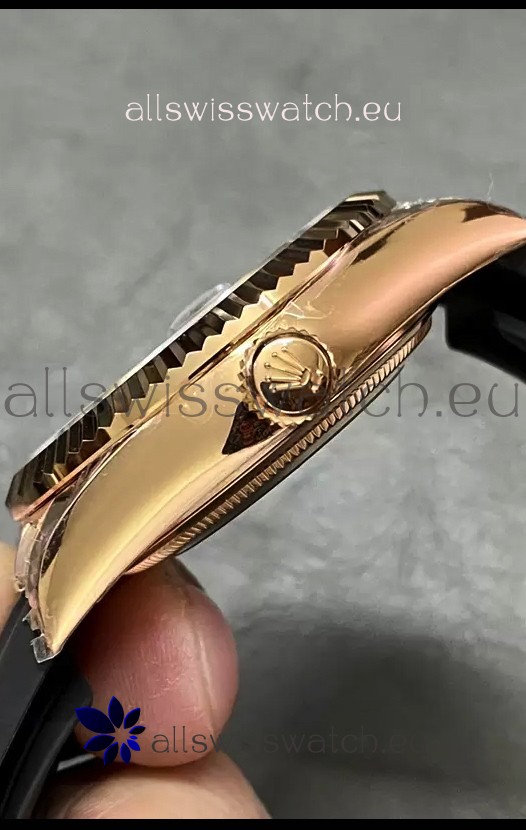 Rose Gold Plating on 904L Stainless Steel Case with Solid Case Back complete with Rolex Markings and Engravings