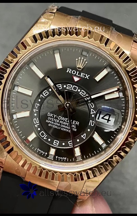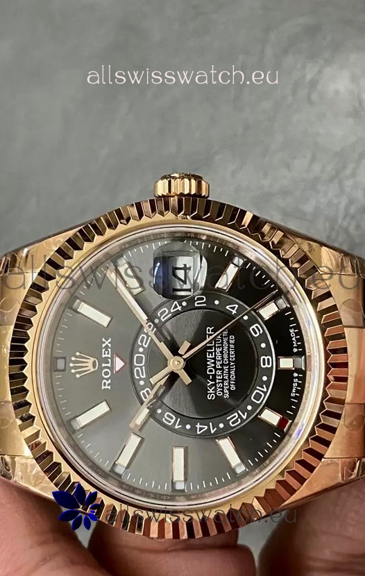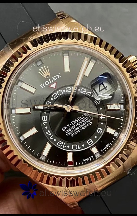 Rolex Sky-Dweller REF# M336235 Black Dial Rose Gold Watch in 904L Steel Case 1:1 Mirror Replica