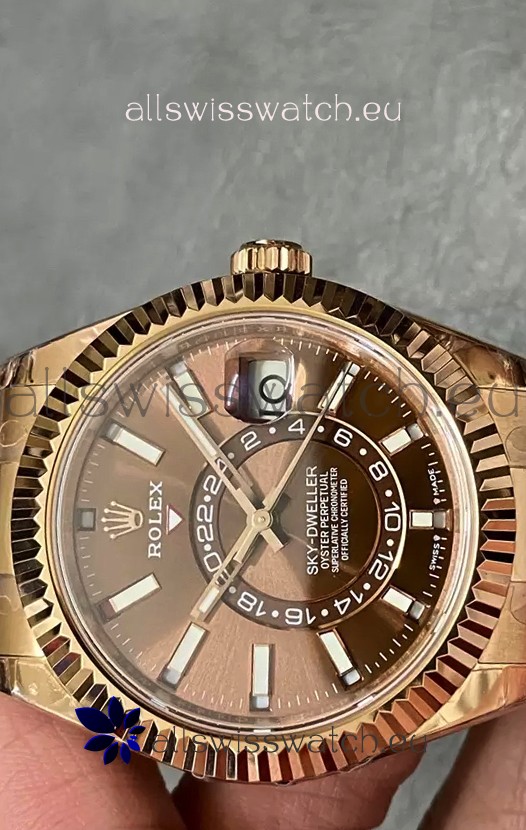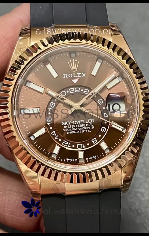 Rolex Sky-Dweller REF# M336235 Brown Dial Rose Gold Watch in 904L Steel Case 1:1 Mirror Replica