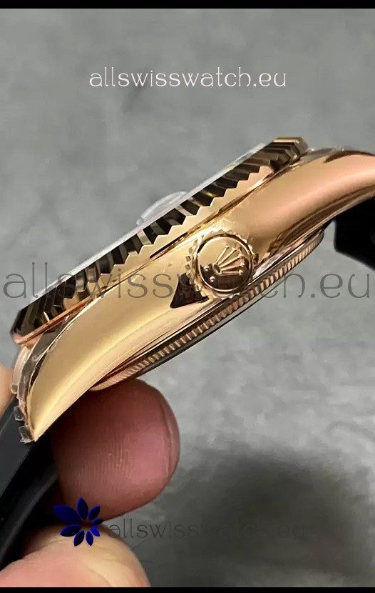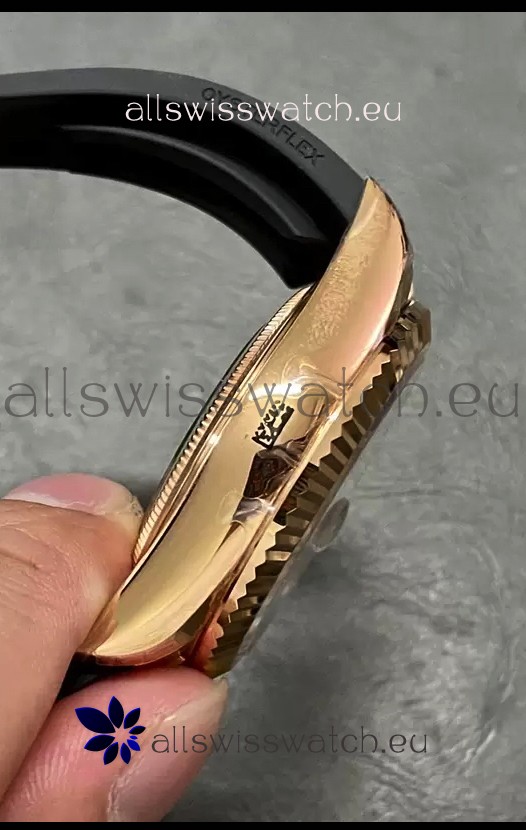 Rose Gold Plating on 904L Stainless Steel Case with Solid Case Back complete with Rolex Markings and Engravings