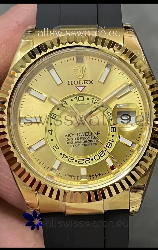 Rolex Sky-Dweller REF# M336235 Gold Dial Yellow Gold Watch in 904L Steel Case 1:1 Mirror Replica