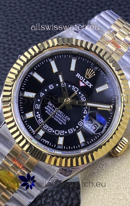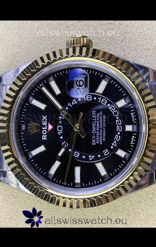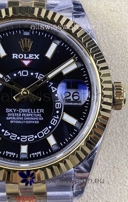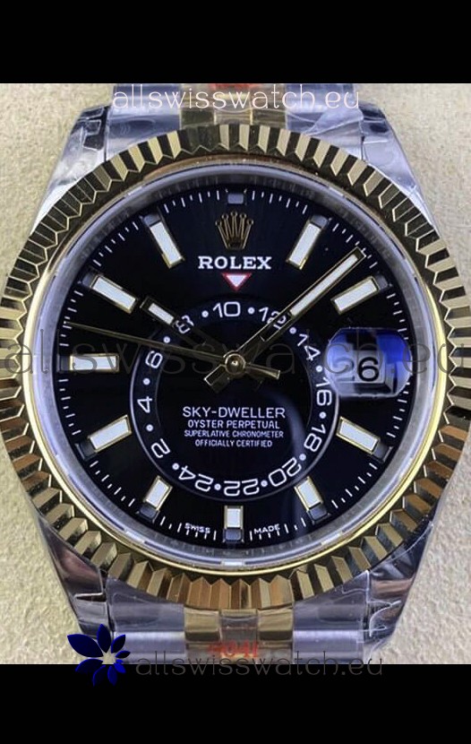 Rolex Sky-Dweller REF# M336933 Black Dial Watch in Yellow Gold 904L Steel Case 1:1 Mirror Replica