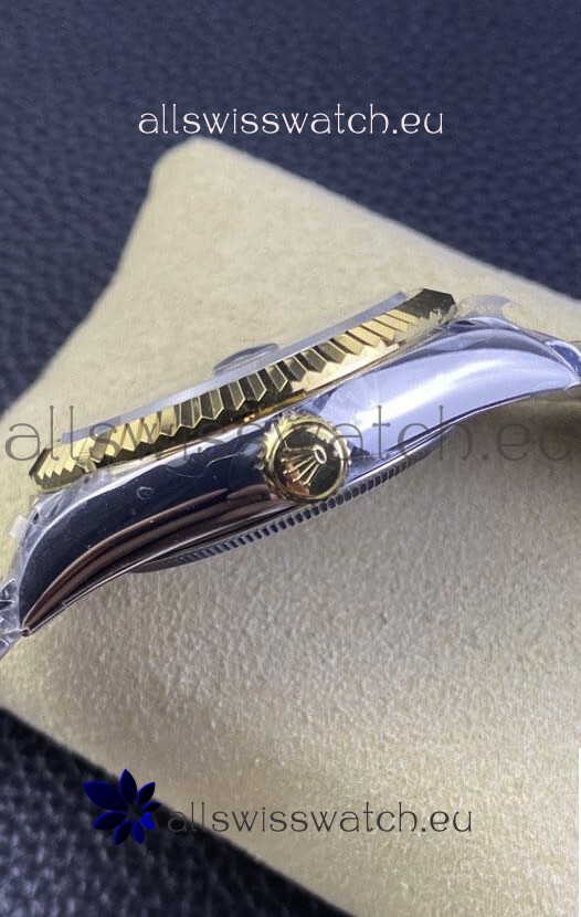 18K Two Tone Yellow Gold Plating on 904L Stainless Steel Case with Solid Case Back complete with Rolex Markings and Engravings