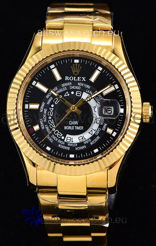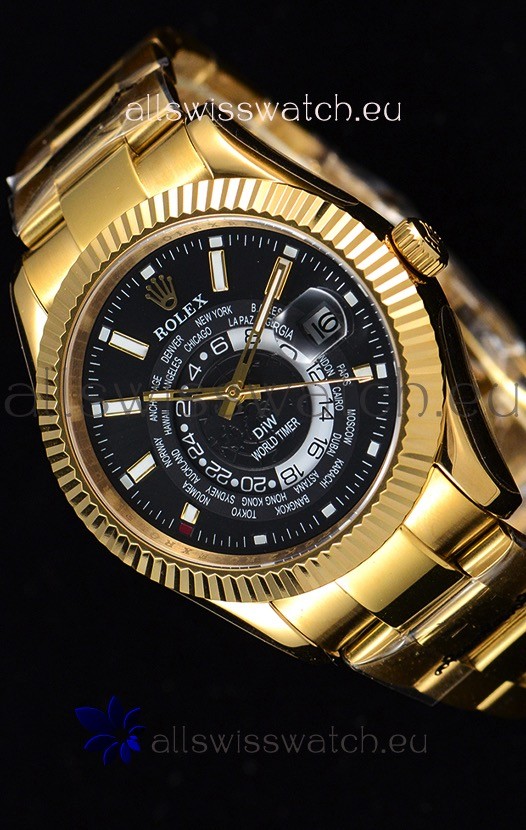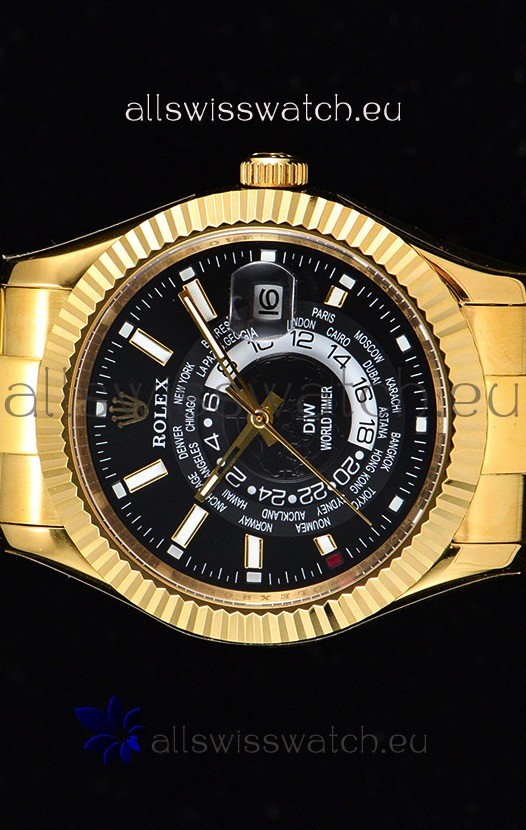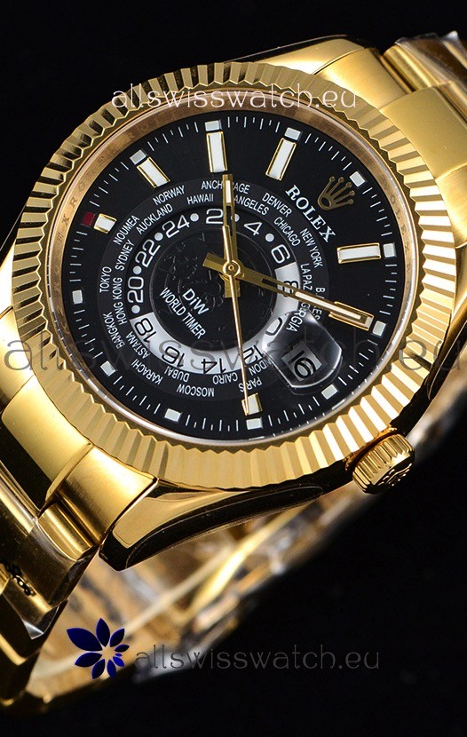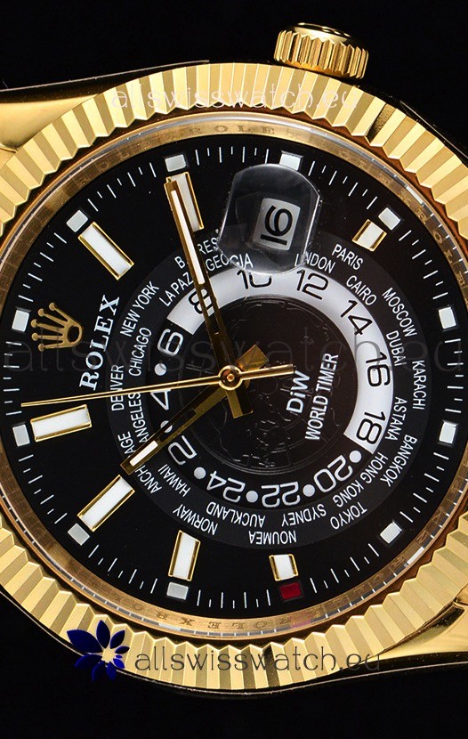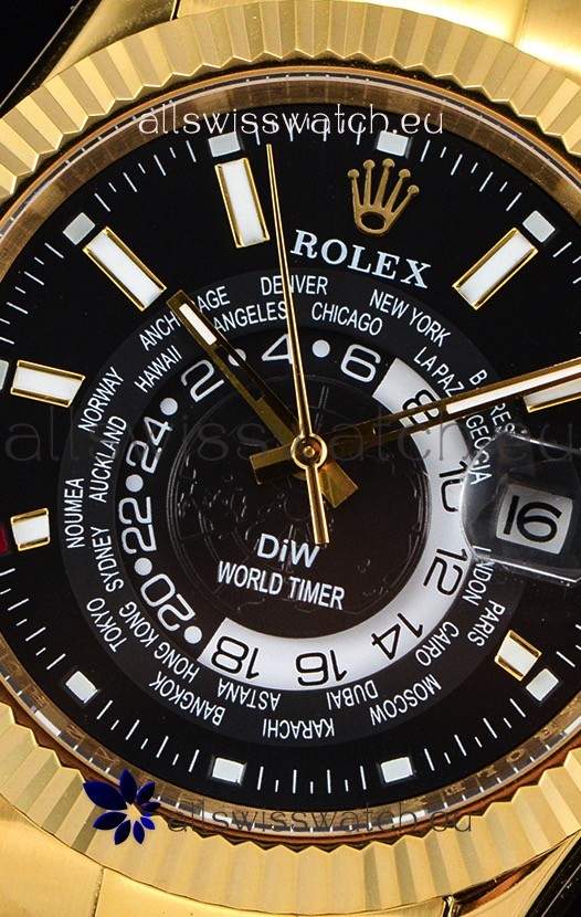 Rolex SkyDweller Swiss Watch in 18K Yellow Gold Case - DIW Edition Black Dial